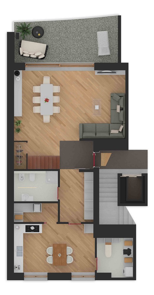 ATTICO primo ingresso su due livelli con terrazzi dall’emozionante vista sul golfo e città. Le qualità delle finiture, la cura dei particolari e la preziosità dei materiali lo pone ad un alto livello, per chi ama la qualità del vivere ed apprezza le tecnologie avanzate di costruzione. (Geotermia, impianti idrotermo sanitario per riscaldamento e raffrescamento, impianto di ventilazione forzata per rinnovare e deumidificare gli ambienti, domotica e molto altro…… )