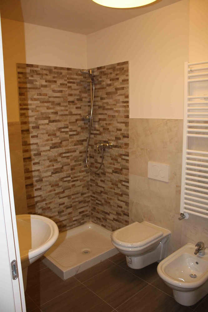 ingresso, soggiorno, cucinino, bagno, 2 stanze da letto, balcone, ampio terrazzo, riscaldamento autonomo, ascensore, posto auto e cantina.